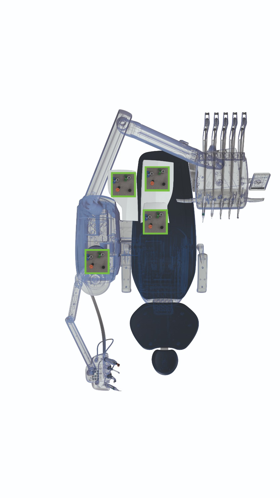 Modern dental units, instruments, and accessories for advanced dental care.